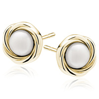 Kolczyki srebrne z cyrkoniami i masą perłową