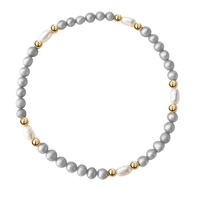 Bransoletka na gumce srebro pozłacane białe i szare perły