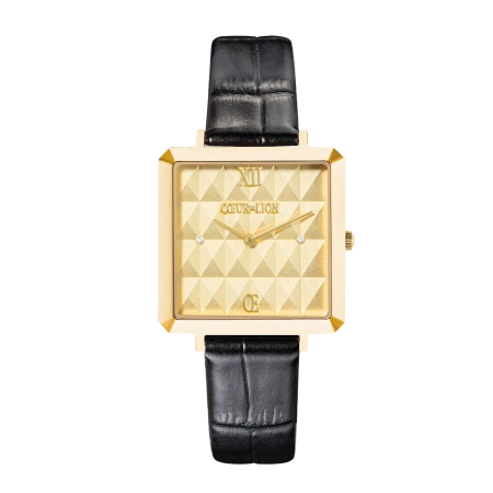Zegarek Iconic Cube Spikes Bransoleta złota Skóra Czarny