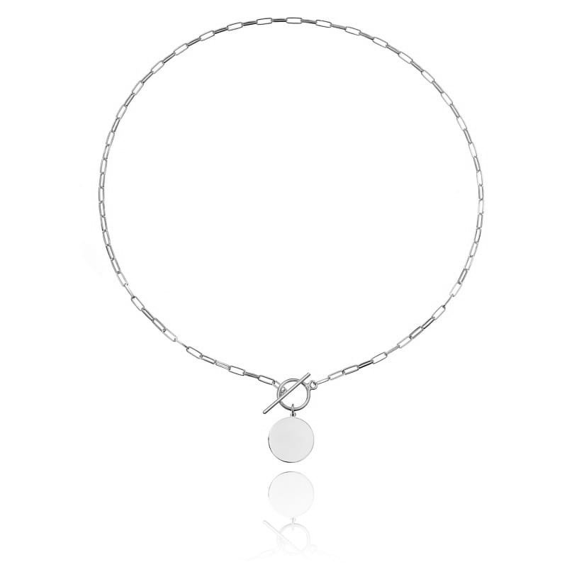 - Stylowy naszyjnik srebrny z delikatnym łańcuszkiem ogniwowym i okrągłą zawieszką to nowoczesny dodatek idealny do codziennych stylizacji. Minimalistyczna forma sprawia, że świetnie sprawdza się także na prezent.