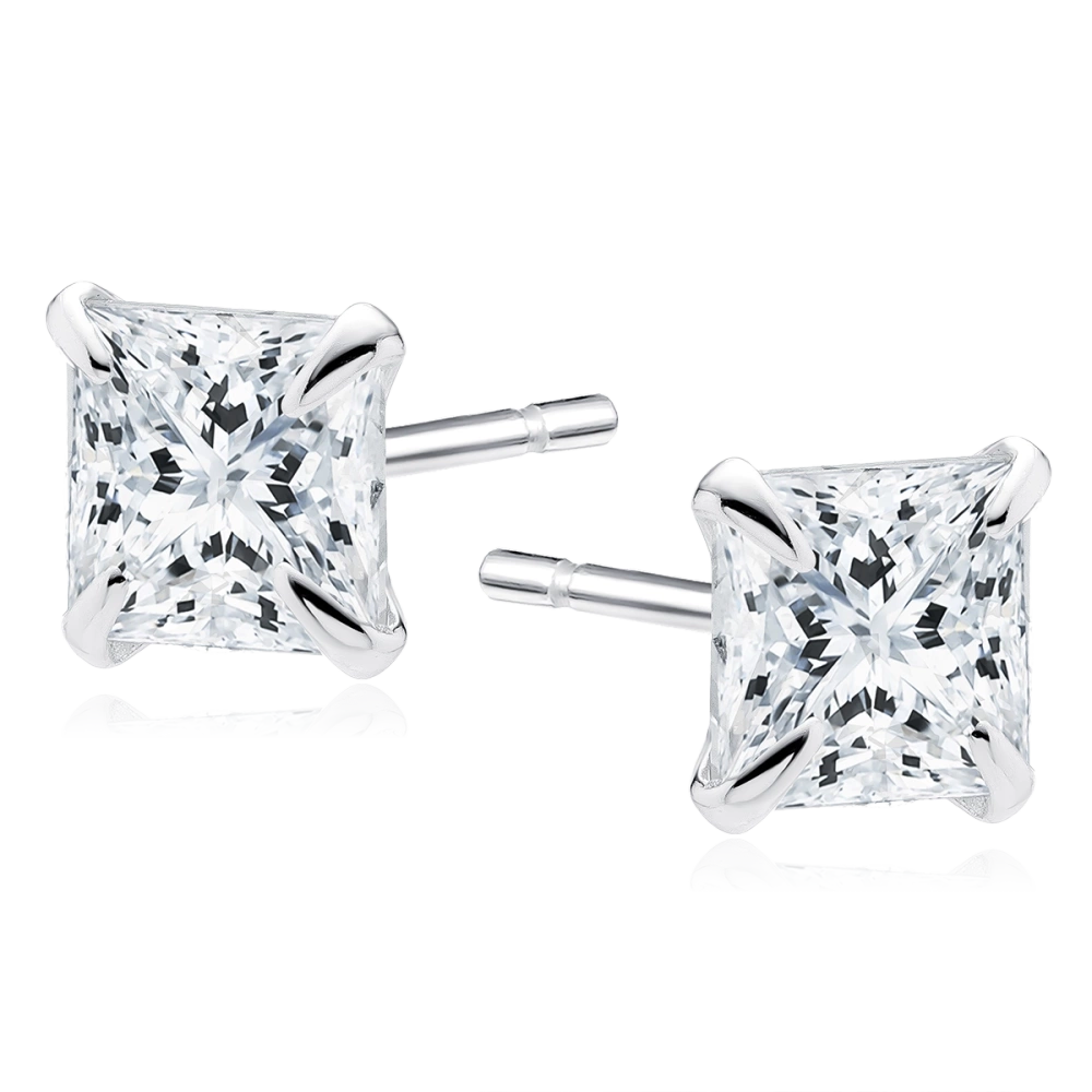 Srebrne kolczyki z kwadratową cyrkonią 4 mm