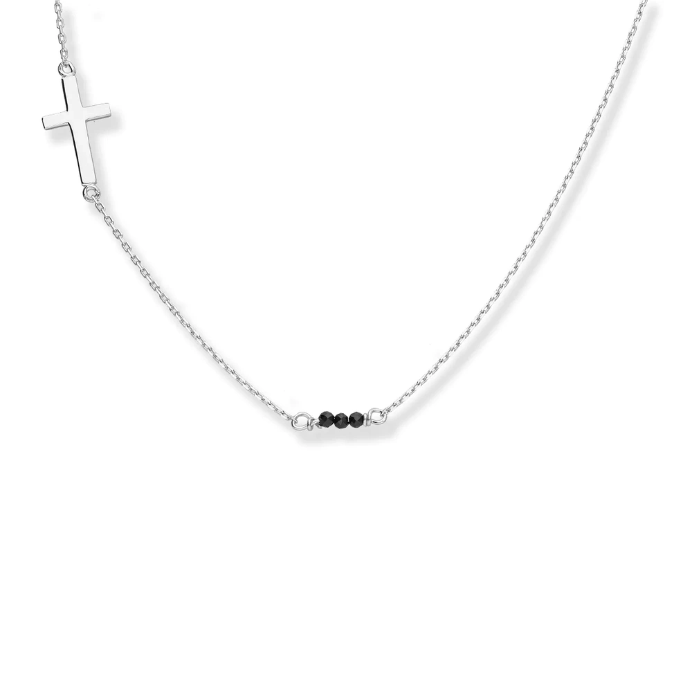 Naszyjnik srebrny z krzyżykiem i onyksem