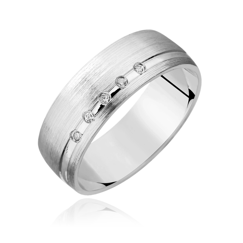 - Elegancka obrączka wykonana ze srebra pr. 925 zachwyca subtelnym matowym wykończeniem i delikatnym blaskiem cyrkonii. To stylowa propozycja dla osób ceniących klasyczną biżuterię z nowoczesnym akcentem. Idealna na prezent na wyjątkową okazję.