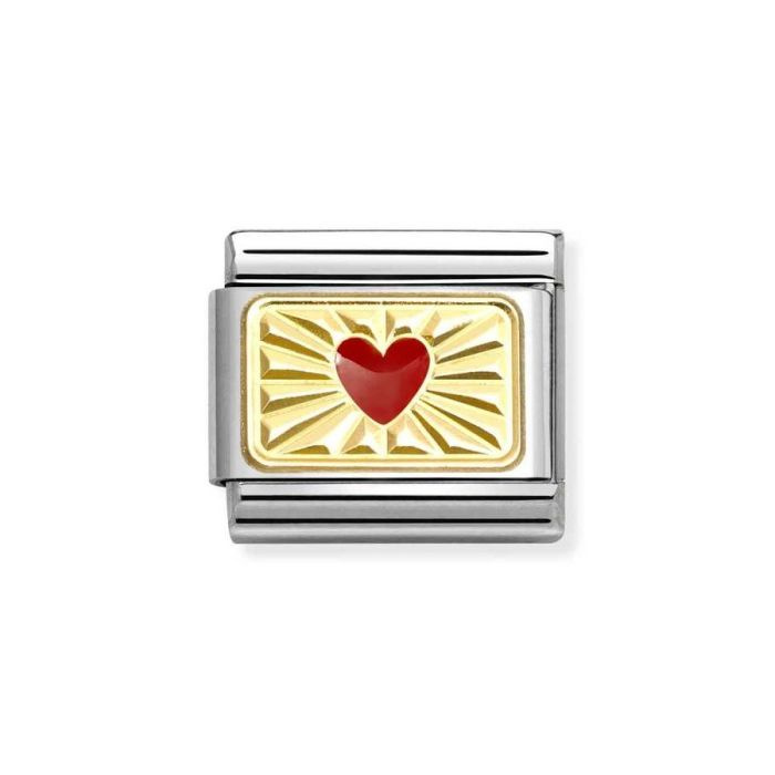 Element link do bransoletek Nomination Composable Stal + złoto 18k płytka z czerwonym sercem