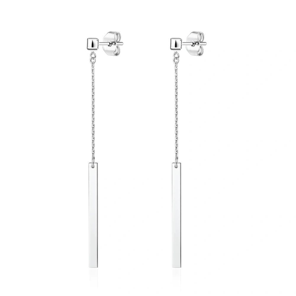- Nowoczesne srebrne kolczyki pr. 925 w formie długich, minimalistycznych zawieszek doskonale podkreślają rysy twarzy. To elegancki dodatek idealny na co dzień i na prezent, dodający stylizacjom subtelnej lekkości.