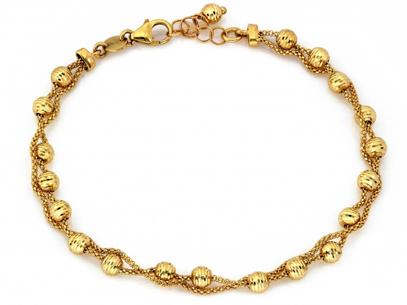 - Elegancka bransoletka ze złota pr. 585 z drobnymi, dekoracyjnymi kuleczkami to stylowy dodatek, który pięknie podkreśla nadgarstek. Jej subtelny połysk i delikatna forma sprawiają, że doskonale sprawdzi się na co dzień i na prezent.