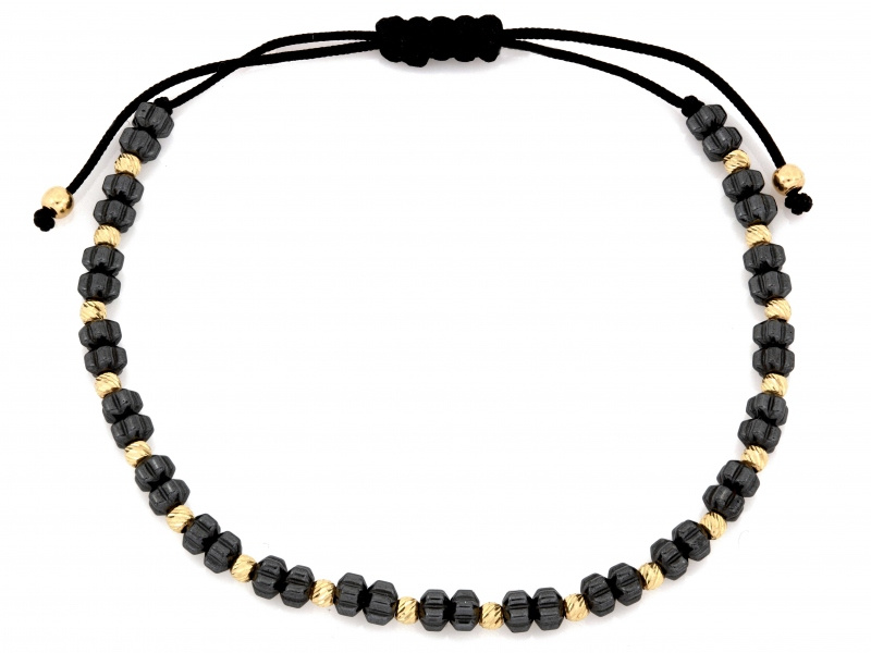 Złota bransoletka z hematytem na czarnym sznurku