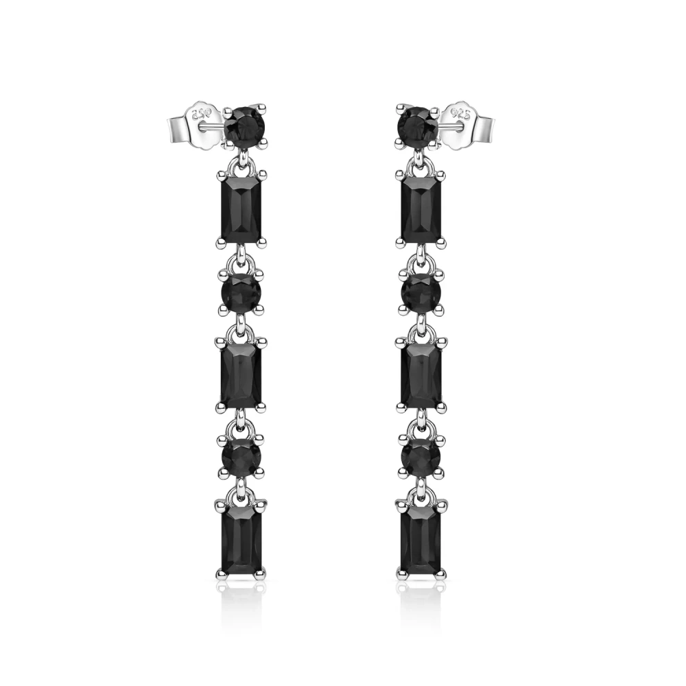 Kolczyki srebrne wiszące z czarnymi cyrkoniami