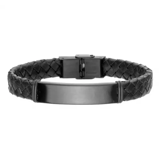 Bransoletka ze stali szlachetnej czarna na plecionej skórze