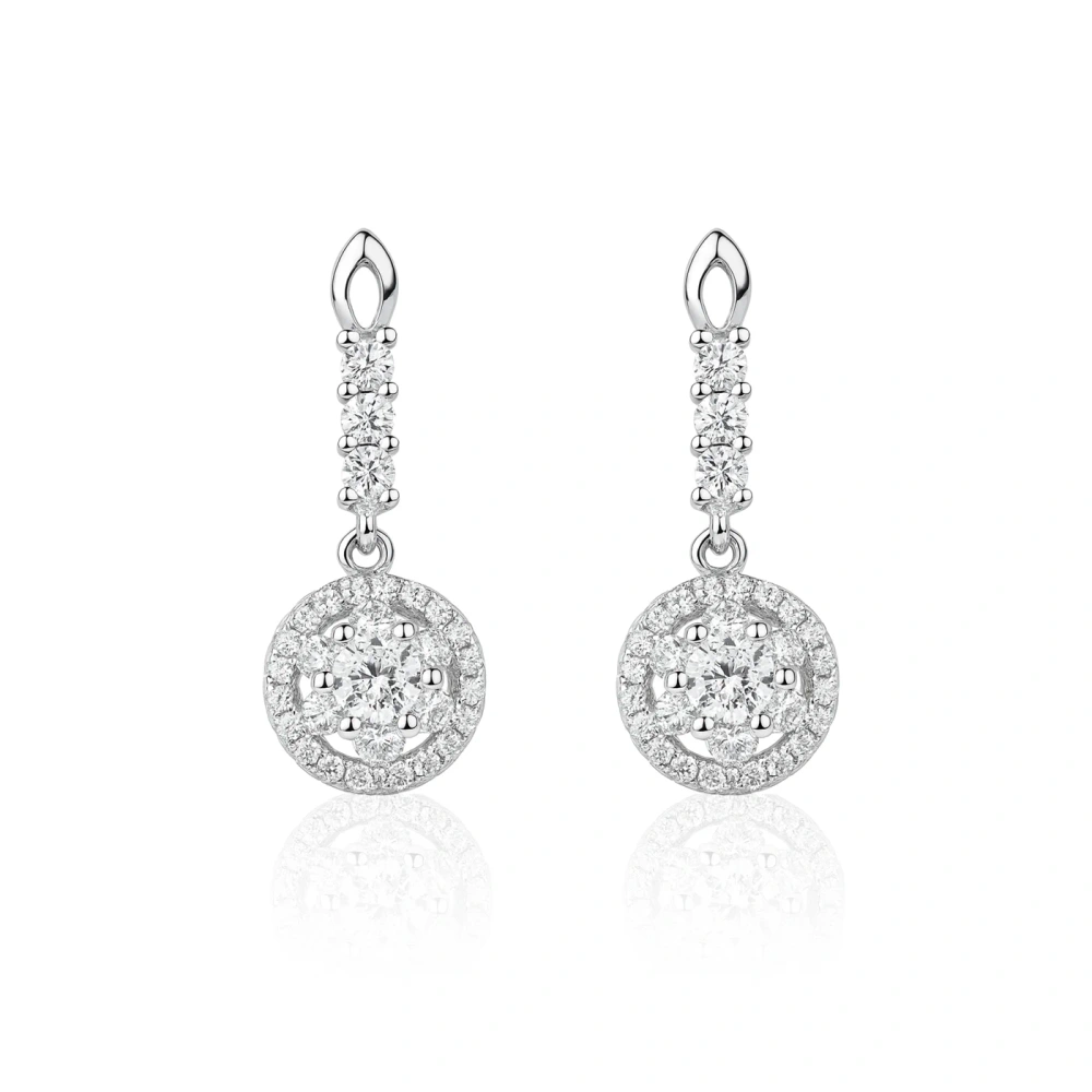 Wyjątkowe kolczyki srebrne wykonane z wysokiej jakości srebra pr. 925, bogato zdobione błyszczącymi cyrkoniami, które pięknie odbijają światło. Okrągły motyw z centralnym kamieniem oraz delikatnie wysadzana część wisząca nadają biżuterii elegancki i luksusowy charakter. Kolczyki doskonale sprawdzą się jako biżuteria ślubna oraz wieczorowa, subtelnie dopełniając eleganckie stylizacje i podkreślając kobiecy styl. To ponadczasowa propozycja biżuterii srebrnej, idealna na wyjątkowe okazje.