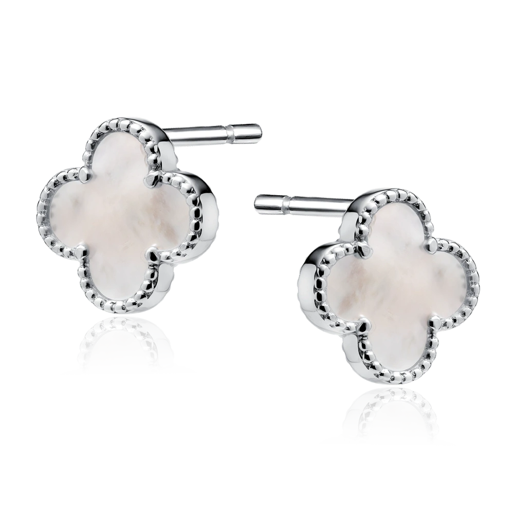- Delikatne kolczyki ze srebra pr. 925 w kształcie koniczyny, z jasnym perłowym wypełnieniem, subtelnie podkreślają elegancki styl. Klasyczna forma sprawia, że są idealnym wyborem na prezent.