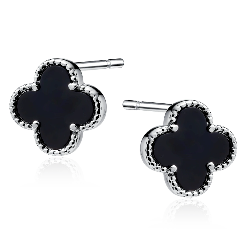 - Eleganckie kolczyki ze srebra pr. 925 w kształcie koniczyny, z wypełnieniem z czarnego onyksu, zachwycają klasycznym i ponadczasowym stylem. To stylowa propozycja na prezent.