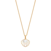 Naszyjnik pozłacany muszla z perłą biała emalia